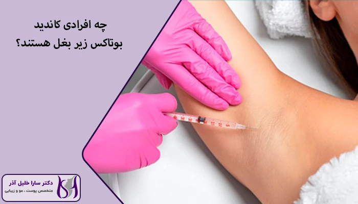 افرادی که دچار تعریق بیش از حد و مزمن در ناحیه زیر بغل هستند و روشهای خانگی یا دارویی نتوانستهاند مشکل آنها را حل کنند، معمولا بهترین کاندیدا برای این روش محسوب میشوند و کسانی که تعریق شدید باعث کاهش اعتماد به نفس، محدودیت در فعالیتهای روزمره یا ایجاد لکه و بوی نامطبوع روی لباسها شده است، میتوانند از این درمان بهرهمند شوند. این روش برای بزرگسالانی که سلامت عمومی مناسبی دارند و هیچ مشکل پزشکی خاصی که مانع تزریق بوتاکس شود، ندارند، ایمن و موثر است و با ارزیابی دقیق توسط متخصص، اثر درمان بهینه خواهد بود.